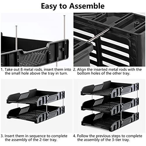 Sayeec - Robusto portadocumenti da scrivania con 3 cestelli in plastica e 8 divisori ad asticella in metallo, organizer per documenti da conservare o tenere a portata di mano 3 Tier Black