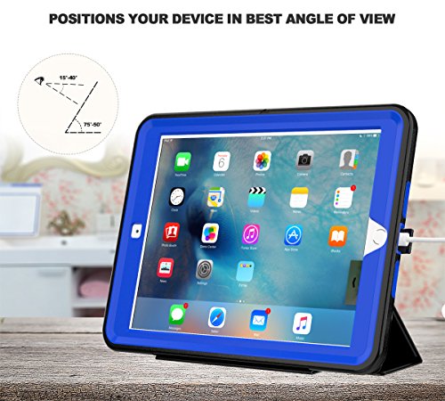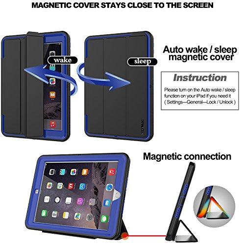 Saymac, custodia per iPad 9.7 2017, a tre strati, protegge dalle cadute, robusta custodia per iPad con funzione wake/sleep a calamita, custodia per Apple iPad 9,7” 2017 Black/Blue