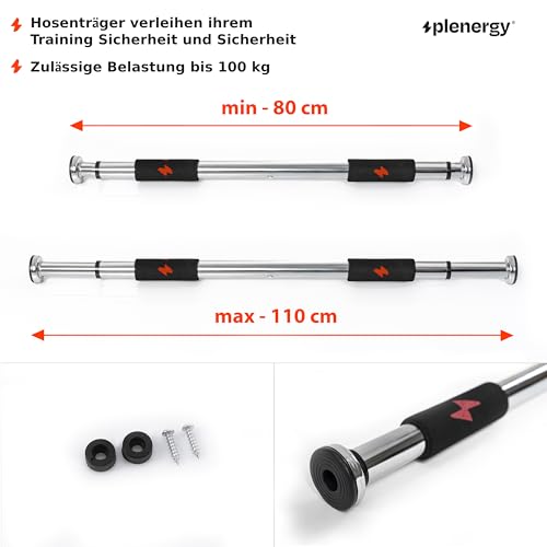 Sbarra per trazioni da porta 83-130 cm, barra per trazioni regolabile individualmente senza forare le pareti, pull up bar senza viti, fissaggio rapido e sicuro senza viti sul telaio della porte