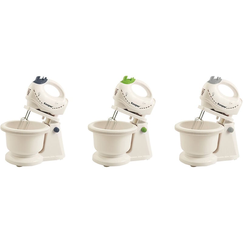 Corpo in plastica. Con ciotola girevole, 5 velocit Pulsante turbo, completo di 2 ganci in acciaio per impastare, 2 fruste in acciaio per montare, pulsante di espulsione accessori. Piedini a ventosa, base di appoggio, presa ergonomica. Ciotola 22,4 x H 11 cm. Capacit2 litri. Cavo 1,06 metri, 230V-50Hz. Colori assortiti.