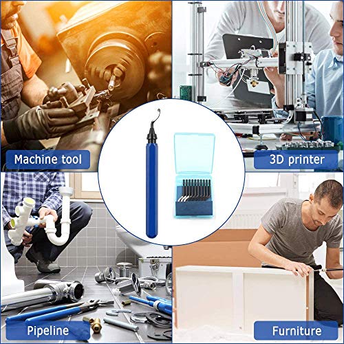 【Pacchetto】Set di tagliatore per sbavatura ottiene 10 lame per sbavatura e 1 manico blu e la lama per sbavatura è alloggiata in una comoda scatola di plastica per un facile porto e conservazione.