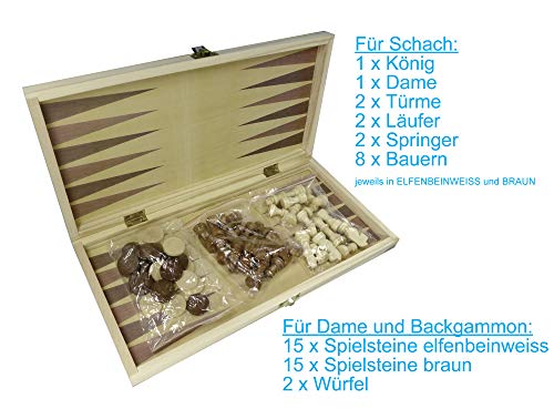 Gioco di scacchi 3 in 1: backgammon, scacchi e signore sono inclusi in uno scacchiero;