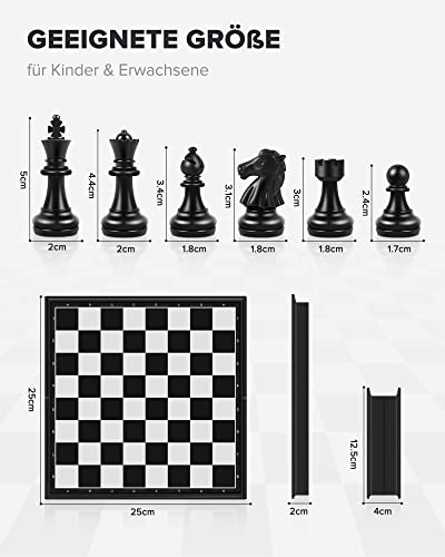 Scacchi con Magnetica, Scacchiera con Magnetici Scacchi Pezzo e 2 Regine Extra, per Bambini e Adulti, Scheda di Gioco Pieghevole e Portatile per Viaggi, 25x25CM