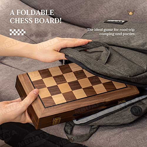 Pacchetto include: il nostro set di giochi in legno include 32 pezzi degli scacchi e 24 pezzi della scacchiera e misura 13 "x 6,6" x 2,6 "quando piegato (33 * 17 * 6,5 CM), è comodo per uso interno ed esterno.