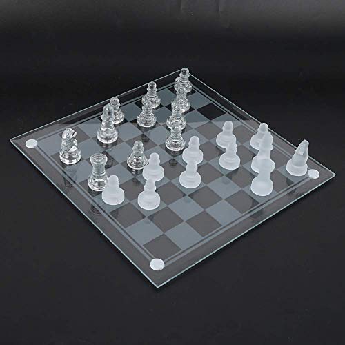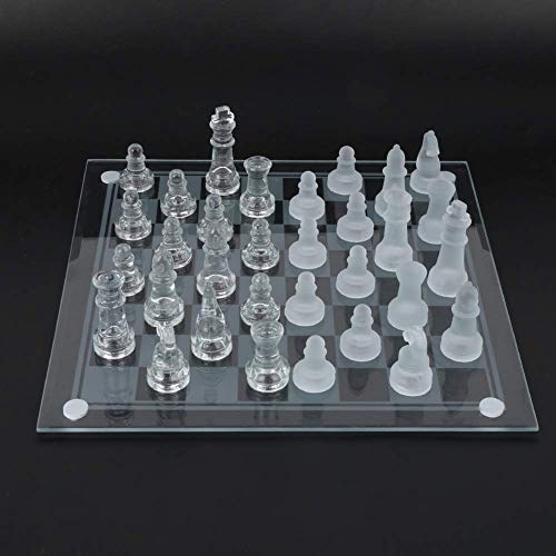 Scacchiera in vetro smerigliato Il motivo a scacchiera è di colore brillante e non sbiadisce, i pezzi degli scacchi sono realizzati in vetro smerigliato, squisito e liscio.