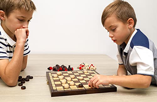 Scacchiera in Legno e Dama Gioco - 2 in 1 Scacchi Professionale, Chess Board Scacchiere Set Portatile Gioco da Viaggio per Adulti Bambini 30,5 x 30,5 cm