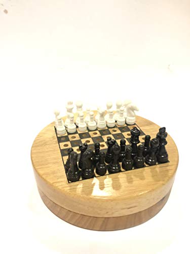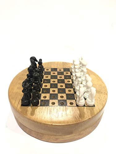 Scacchiera piccola in legno, scacchiera, scacchiera in legno, scacchiera tascabile, scacchiera unica ed inimitabile, scacchiera tonda, scacchiera con scomparto (bianco e nero)