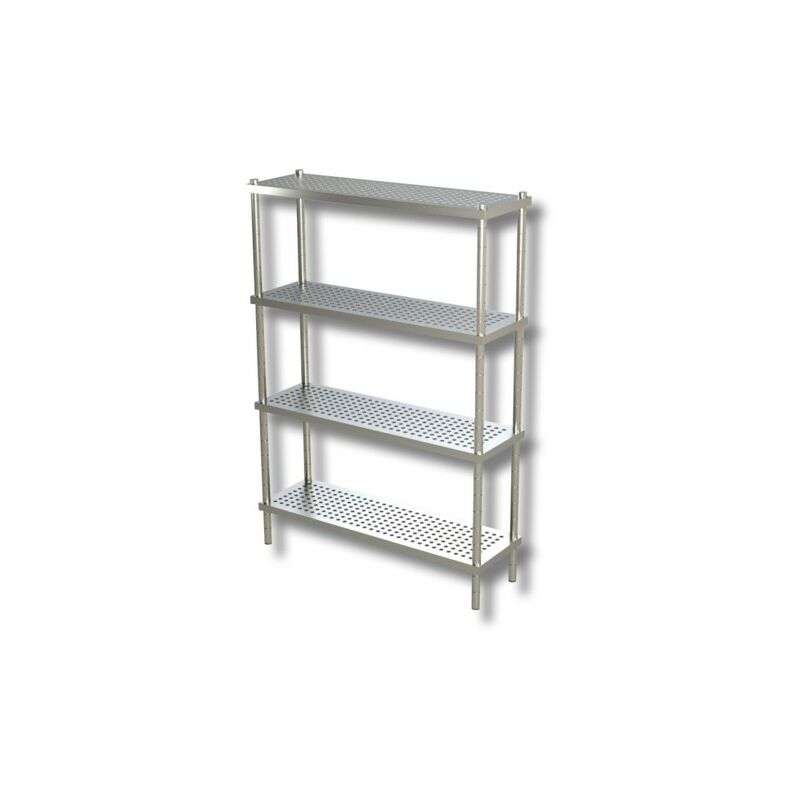 Codice RS8012 - Scaffalatura 4 ripiani forati modello RP-DSSCFE11418, dimensioni cm. 110x40x180 (lxpxh), altezza totale cm. 180. Realizzazione in acciaio inox, gambe tonde. Fornito in kit smontato.