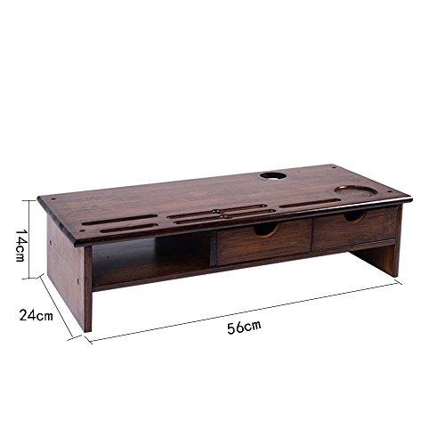 Scaffale Alzato Con Schermo Del Monitor Dello Schermo Del Computer Desktop Con Cassetto, 2 Strati Di Legno Massiccio 56 * 24 * 14cm A+