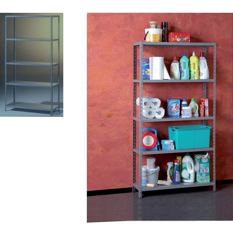 Scaffale metallico 5 ripiani, a bullone, portata max a ripiano 60 kg, colore grigio, cm 90x40xh.172