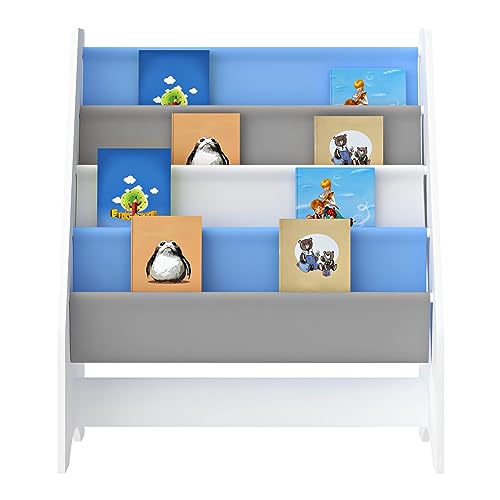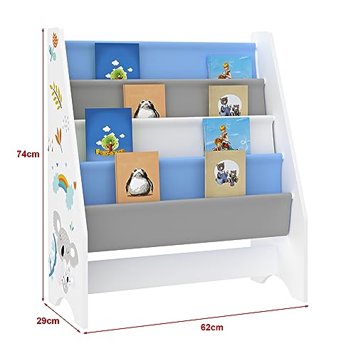 En.casa - Scaffale per Cameretta con 4 Contenitori Morbidi a Scaletta - Mobile Porta Libri a Misura di Bimbi - Decorazione Koala - Blu/Bianco
