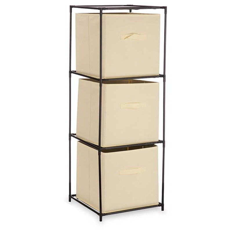 Ottimizzate il vostro spazio con questo scaffale pratico ed elegante, perfetto per organizzare tutto, dai vestiti agli accessori. Grazie al suo colore naturale e al design pulito, si adatta perfettamente a qualsiasi ambiente. - Conservazione versatile: tre spaziosi cassetti offrono ampio spazio per vari oggetti, dai vestiti alle forniture per ufficio. - Design robusto e leggero: la combinazione di metallo, tessuto TNT e plastica rende lo scaffale leggero e stabile, adatto all'uso quotidiano. - Look elegante: il colore naturale e il design semplice rendono lo scaffale adatto a diversi stili di interni, dal moderno al rustico. Questo scaffale non è solo funzionale ma anche esteticamente gradevole, rendendolo un perfetto oggetto d'arredo per la casa. La sua struttura leggera lo rende facile da spostare e posizionare ovunque sia necessario. Specifiche: Materiale: metallo (ferro), tessuto, plastica (PP) Colore: naturale e nero Dimensioni (assemblato): 35 x 35 x 102 cm Peso: 2,017 kg