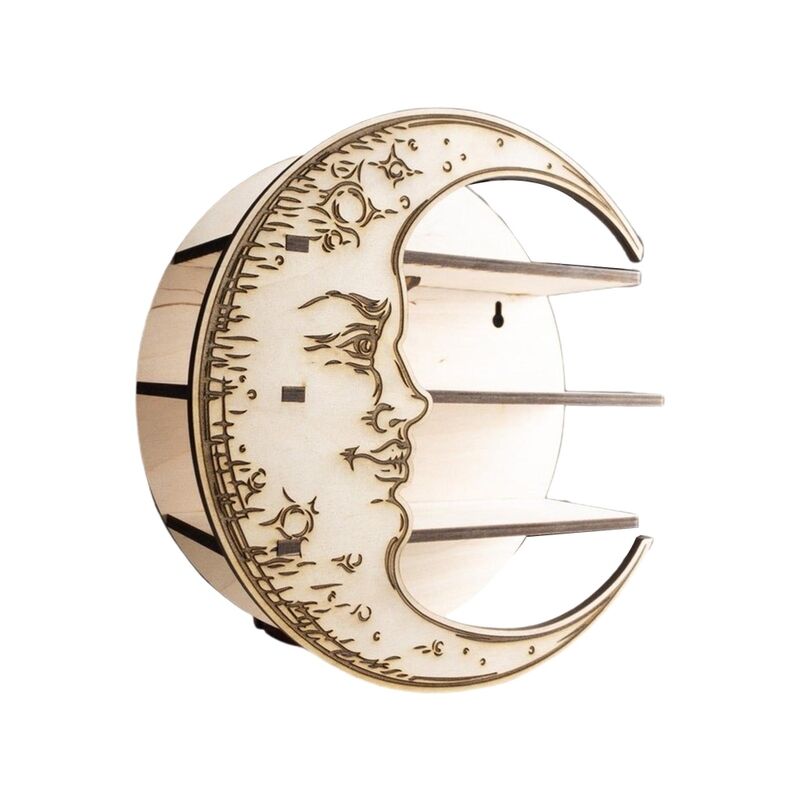 N58C Moon Crystal Shelf oli essenziali Rack di stoccaggio a parete scaffali galleggianti per la casa camera da letto soggiorno decorazione altareOOTDTYCaratteristiche:Design A forma di luna: uno scaffale di forma rotonda dal design splendidamente decorativo migliora l'aspetto, la sensazione e l'atmosfera del tuo spazio che ti aiuta A creare un calore più accogliente per i membri della famiglia, gli amici e gli ospiti.Multistrato: lo scaffale floating moon phase presenta ripiani individuali per consentire di organizzare i tuoi effetti personali, maglieria o piccoli oggetti che lo rendono ottimo per piante grasse, oli essenziali, pietre di cristallo curative o cornici.Ampio uso: questo ripiano è versatile e sarà una bella aggiunta a un tavolo, una scrivania, O parete e abbinerà il design di quasi tutte le stanze per creare un tocco mistico che tu e i tuoi ospiti adoreranno.Durevole: realizzato in legno intagliato con cura per uso a lungo termine, questo ripiano lunare è costruito per