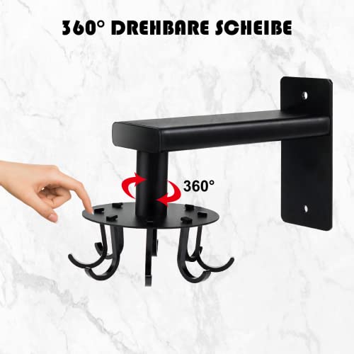 Scaffale da cucina girevole a 360°, portautensili da cucina con 8 ganci, senza perforazione, portaoggetti per cucina/bagno/guardaroba (nero)