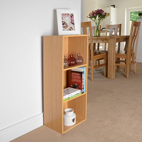 Scaffale, libreria, espositore in legno di faggio o rovere chiaro a 1, 2, 3, 4 ripiani, Beech, 3 ripiani