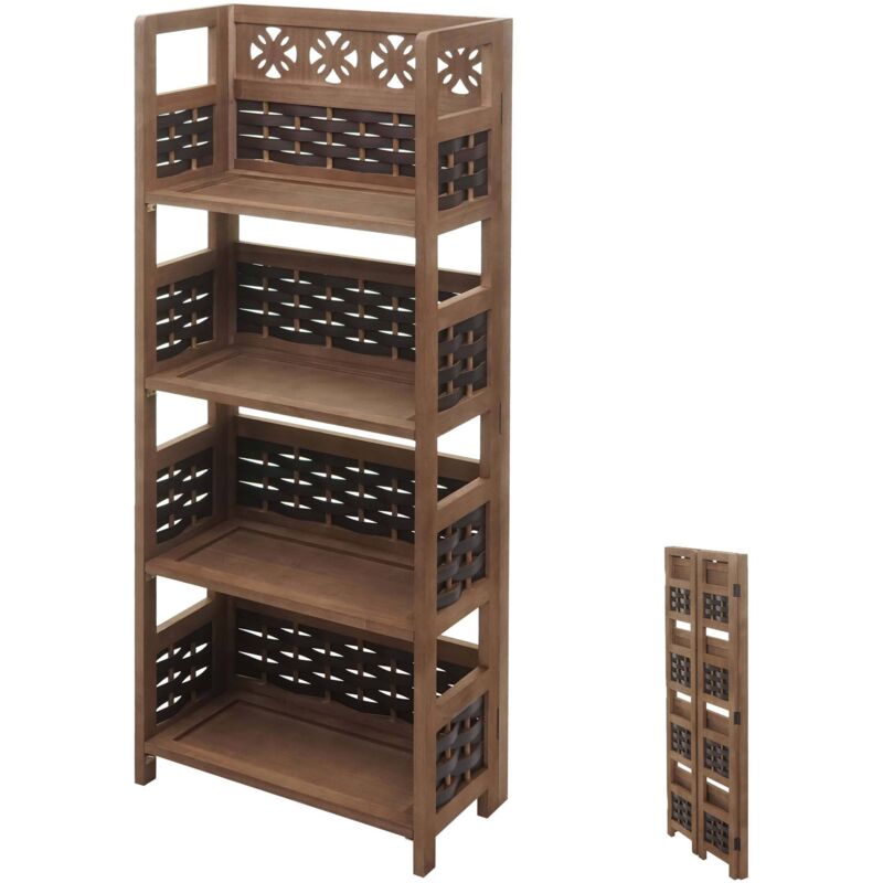 Scaffale libreria pieghevole modello HHG-660 legno polyrattan 4 ripiani colore MARRONE SCURO Questo scaffale offre spazio sufficiente per i tuoi oggetti di uso quotidiano. In bagno, nella camera da letto, nel corridoio o in cucina, questo arredo sar� in gardo di ravvivare la tua casa. Grazie al design moderno, questo scaffale si adatta in modo decorativo a tutti gli ambienti e dona un tocco elegante alla vostra casa. Il legno di paulonia viene ricavato da alberi coltivati in Europa, viene anche definito l'alluminio del legno per la sua leggerezza e l'elevata stabilit�. Proponiamo questi scaffali in diversi colori. molto stabile 4 ripiani design moderno consegnato gi� montato realizzato con legname versatile pieghevole materiale telaio: legno di paulonia materiale intreccio: polyrattan materiale ripiani: multistrato di pioppo dimensioni (ca.): altezza: 110cm larghezza: 43cm profondità: 23cm scaffale piegato AxLxP: 110x43x4cm ripiani LxP: 39x21cm