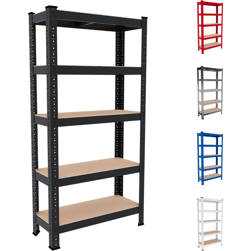 Scaffalatura Petapa con 5 ripiani in metallo e MDF. Ideale per garage, officine, cantine o magazzini. Grazie alla sua alta portata di 875 kg è in grado di immagazzinare qualsiasi tipo di oggetto. Di facile montaggio grazie alla struttura senza bulloni (Push-fit) che può essere montata senza l'utilizzo di attrezzi. Caratteristiche principali: - Dimensioni del singolo scaffale: 150 x 75 x 30 cm (Altezza x larghezza x profondità) - Portata massima: 875 kg - Portata per ripiano: 175 kg - 5 Ripiani realizzati in MDF - Ripiani regolabili in altezza - Antiruggine - Costruzione senza bulloni - Struttura in ferro - Adatto per immagazzinare qualsiasi tipo di oggetto - Colore: nero Contenuto della confezione: 1X Scaffalatura con 5 ripiani 1X Manuale di montaggio