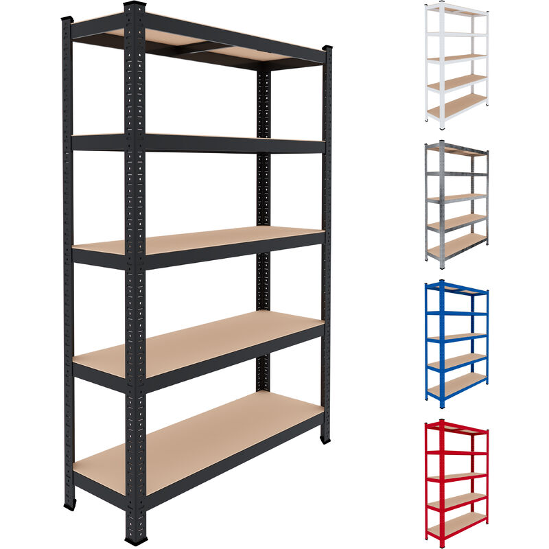 Scaffalatura Coban con 5 ripiani in metallo e MDF. Ideale per garage, officine, cantine o magazzini. Grazie alla sua alta portata di 875 kg è in grado di immagazzinare qualsiasi tipo di oggetto. Di facile montaggio grazie alla struttura senza bulloni (Push-fit) che può essere montata senza l'utilizzo di attrezzi. Caratteristiche principali: - Dimensioni totali: 180 x 120 x 45 cm (Altezza x larghezza x profondità) - Portata massima: 875 kg - 5 Ripiani realizzati in MDF - Ripiani regolabili in altezza - Antiruggine - Costruzione senza bulloni - Struttura in ferro - Adatto per immagazzinare qualsiasi tipo di oggetto - Colore: nero Contenuto della confezione: 1X Scaffalautura con 5 ripiani 1X Manuale di montaggio