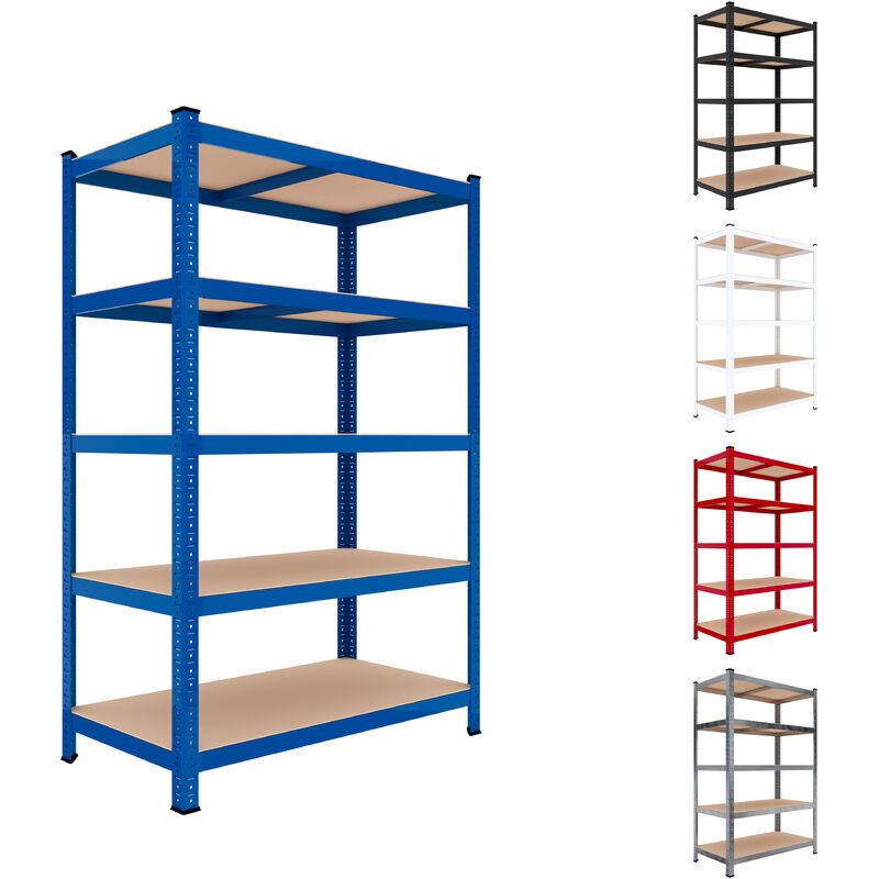 Scaffalatura Jutiapa con 5 ripiani in metallo e MDF. Ideale per garage, officine, cantine o magazzini. Grazie alla sua alta portata di 875 kg è in grado di immagazzinare qualsiasi tipo di oggetto. Di facile montaggio grazie alla struttura senza bulloni (Push-fit) che può essere montata senza l'utilizzo di attrezzi. Caratteristiche principali: - Dimensioni totali: 180 x 90 x 60 cm (Altezza x larghezza x profondità) - Portata massima: 875 kg - 5 Ripiani realizzati in MDF - Ripiani regolabili in altezza - Antiruggine - Costruzione senza bulloni - Struttura in ferro - Adatto per immagazzinare qualsiasi tipo di oggetto - Colore: blu Contenuto della confezione: 1X Scaffalautura con 5 ripiani 1X Manuale di montaggio