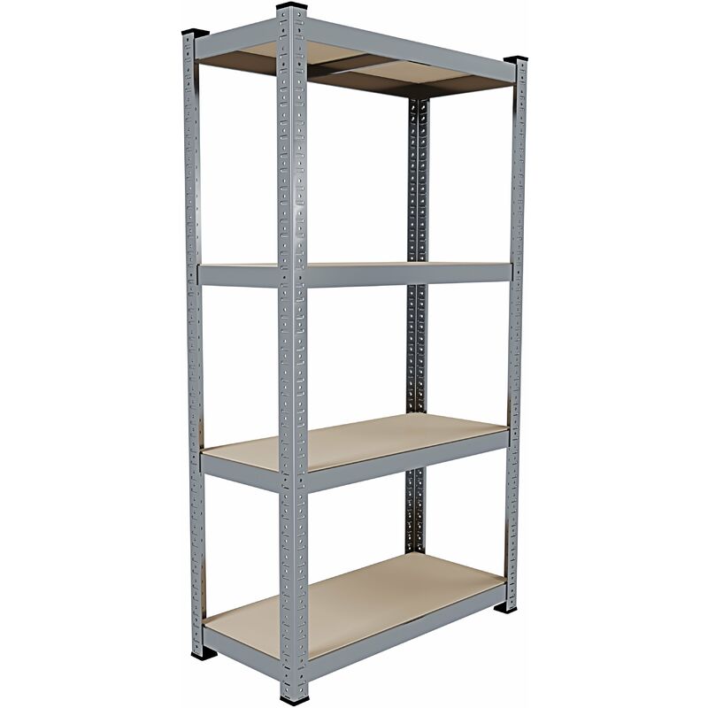 Scaffalatura Raymond con 4 ripiani in metallo e MDF. Ideale per garage, officine, cantine o magazzini. Grazie alla sua alta portata di 700 kg è in grado di immagazzinare qualsiasi tipo di oggetto. Di facile montaggio grazie alla struttura senza bulloni (Push-fit) che può essere montata senza l'utilizzo di attrezzi. Caratteristiche principali: - Dimensioni totali: 160 x 80 x 40 cm (Altezza x larghezza x profondità) - Portata massima: 700 kg - 4 Ripiani realizzati in MDF - Ripiani regolabili in altezza - Antiruggine - Costruzione senza bulloni - Struttura in ferro - Adatto per immagazzinare qualsiasi tipo di oggetto Contenuto della confezione: 1X Scaffalatura con 4 ripiani 1X Manuale di montaggio