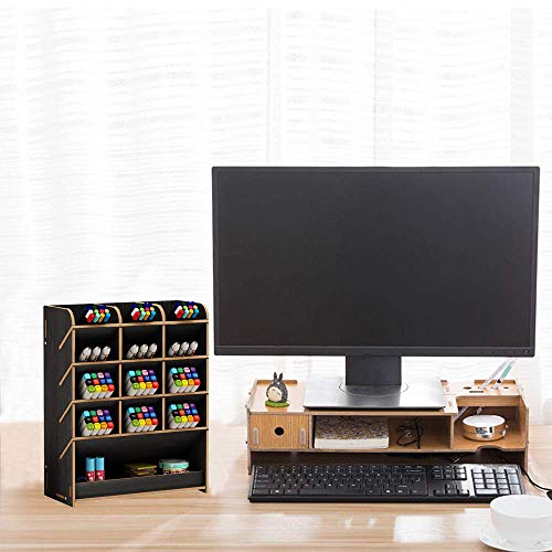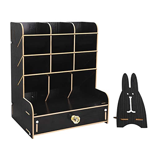 Scaffale organizer da scrivania, in legno, utile per ufficio, scuola e casa Nero