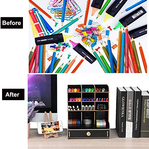 Siate sempre organizzati: 9 scomparti portapenne, 3 scomparti generici, 1 cassetto, abbastanza spazio per una vasta gamma di materiali scolastici che contribuisce davvero a ridurre al minimo il disordine a scuola, a casa o in ufficio e a creare spazio sulla scrivania.