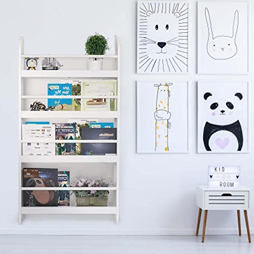 Scaffale da parete bambini libreria a Muro Porta Libri Bambini 4 Ripiani Libreria da Parete Scaffale per Bambini libreria in Legno Scaffale a Muro per Cameretta 59x12x113cm