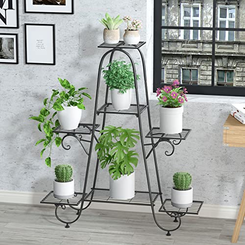 Alta qualità portante: Un massiccio, capiente, rustico ma elegante supporto per piante con 7 ripiani posizionati ad 5 altezze diverse, per giocare con l'effetto scenico di piante di diverse dimensioni. Il materiale più spesso rende il fiore più stabile e ha una forte capacità portante che può mettere i pianti grandi. Il carico di tutti i strati sono 10 kg/strato.