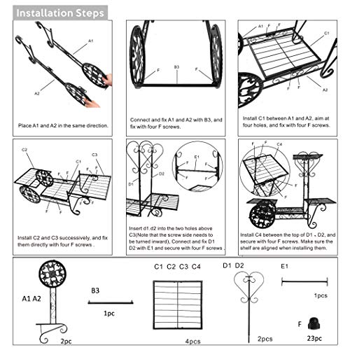 Robusta struttura in metallo: questo supporto per vasi da fiori è realizzato in solido acciaio verniciato a polvere, questo supporto in metallo è abbastanza robusto per tenere le piante in vaso in modo sicuro. Il carrello per fiori può essere utilizzato per decorazioni interne ed esterne