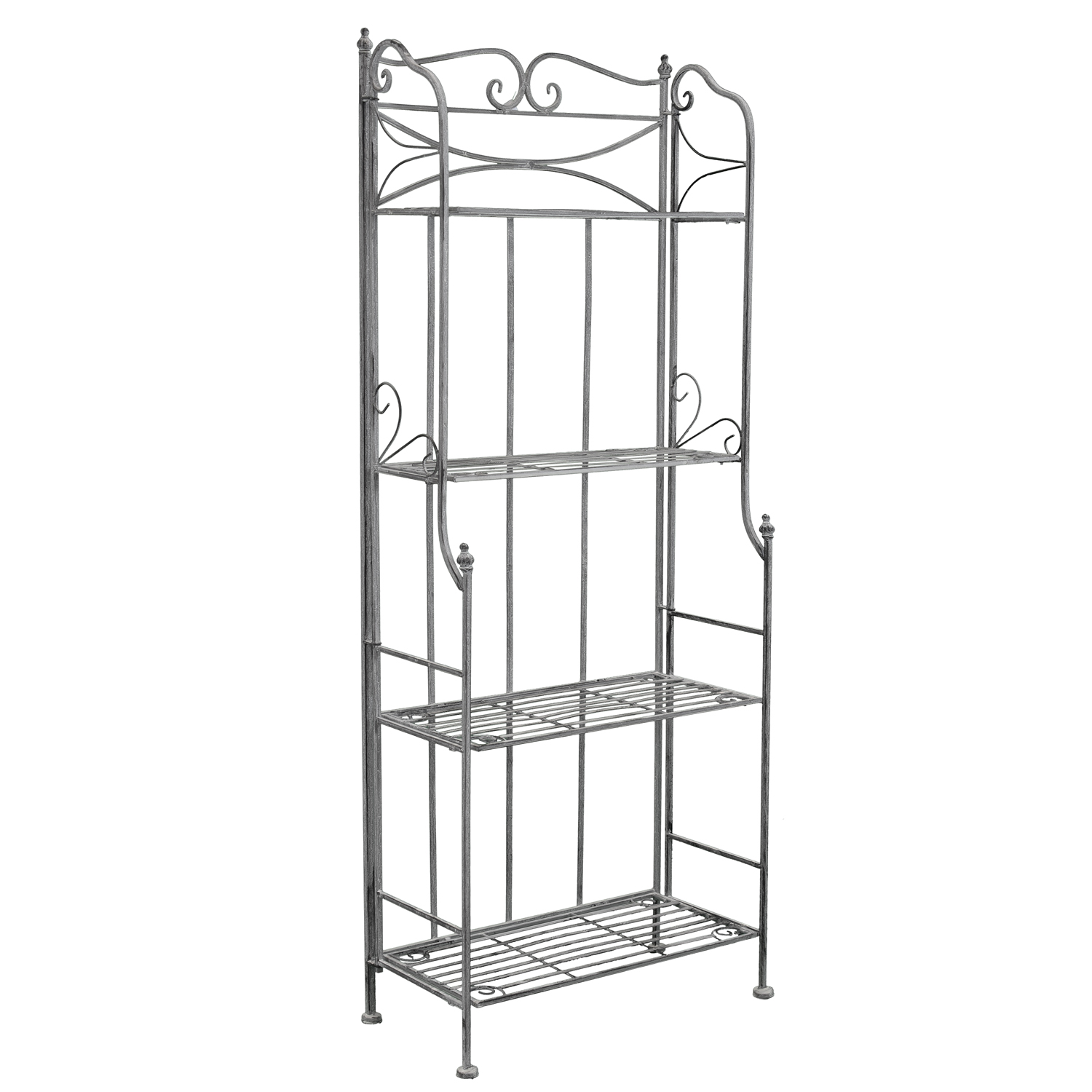Abbellisci l'ingresso esterno di casa con questo elegante étagère dallo stile shabby chic, progettato in acciaio. La verniciatura con trattamento di elettroforesi, a basso impatto ambientale, garantisce una copertura totale e un'ottima resistenza alla corrosione, oltre a un bellissimo colore bianco ossidato. Immaginalo ricoperto dalle tue piante preferite: potrai creare un suggestivo angolo naturale che abbellirà con eleganza i tuoi spazi esterni, dal giardino al terrazzo. Niente ti vieta di utilizzarlo anche all'interno per completare l'arredo delle tue stanze esponendo l'oggettistica che preferisci e tenendo in ordine i tuoi accessori. Lo scaffale è completo di 4 ripiani e ha misure totali di 61x156x32 cm.