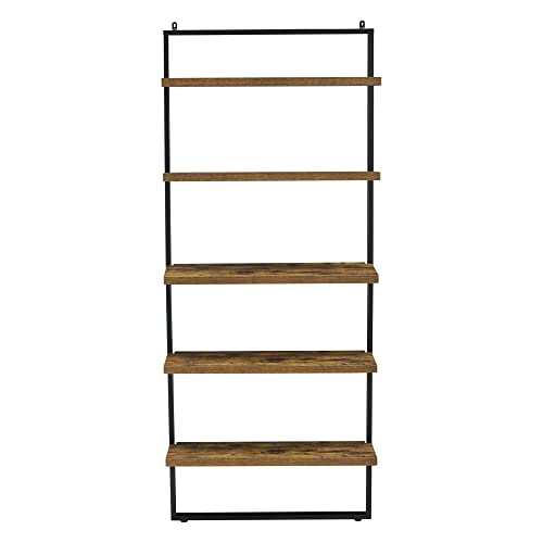 En.casa - Scaffale a 5 Ripiani in Colore Legno Scuro 195 x 80 x 30 cm Portaoggetti/Libreria a Scala con Telaio in Ferro - Fissaggio a Muro