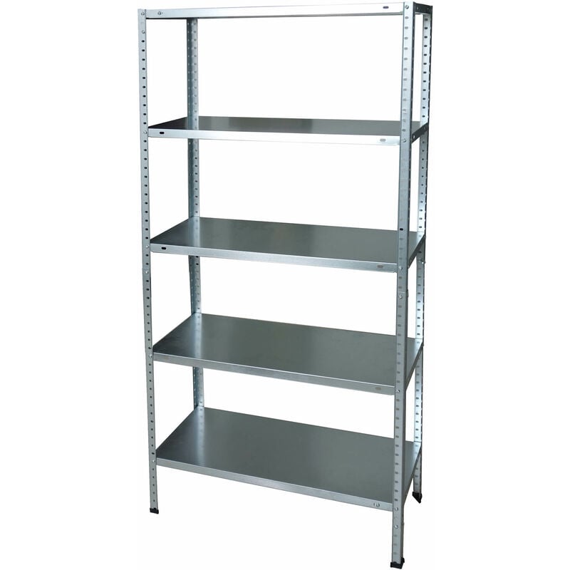 Scaffale Scaffale 5 Ripiani in Metallo Galvanizzato Fadi Silver Scaffale con struttura in metallo galvanizzato con fissaggio a bulloni. Caratteristiche Tecniche Scaffale 5 Ripiani in Metallo Galvanizzato Fadi Silver Scaffale a 5 ripiani Misure: H 187 x L 100 x P 30 cm Metallo galvanizzato Portata: 50 Kg per ripiano con carico uniformemente distribuito Spessore ripiani: 0,5 mm Spessore montanti: 0,5 mm Bulloni a testa tonda M6 4 montanti a L per confezione 4 piedini in plastica Imballo in nylon termoretraibile contenente montanti, piani, piedini, bulloni ed istruzioni di montaggio.
