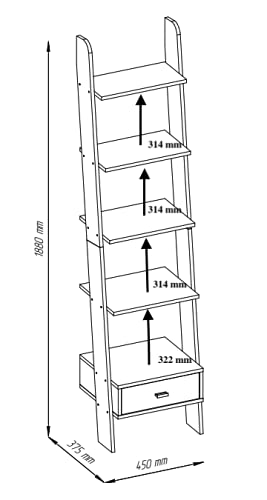 Scaffale a scala Frank, con ripiani e cassetto, 45 cm, colore: bianco