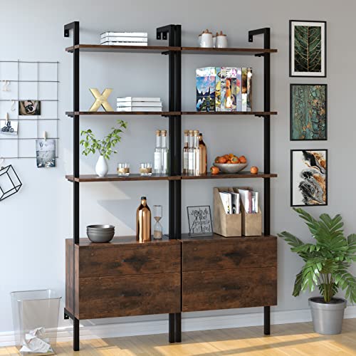 Scaffale a Scale in Stile Industriale,Libreria a Parete,Armadio Portaoggetti,con 2 Cassetti e 4 Ripiani,per Soggiorno,Studio,Ufficio 185x60x30cm(Marrone Vintage e Nero)