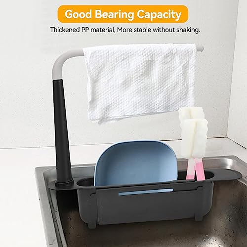 Scaffale Di Scarico Telescopico Per Lavello, Sink Sponge Organizer Supporto, Supporto Telescopico per Lavello Portaoggetti Espandibile, Portaspugne per Lavello Cucina con Portasciugamani(Nero)