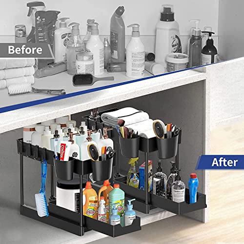 Jianyana-Multifunzione Scaffale Sottolavello Portaoggetti, 2 Strati Organizer Sottolavello Cucina, Portaspezie, Portaoggetti con Cassetti a Scorrevoli Estraibili, Bagno, Scrivania Ufficio