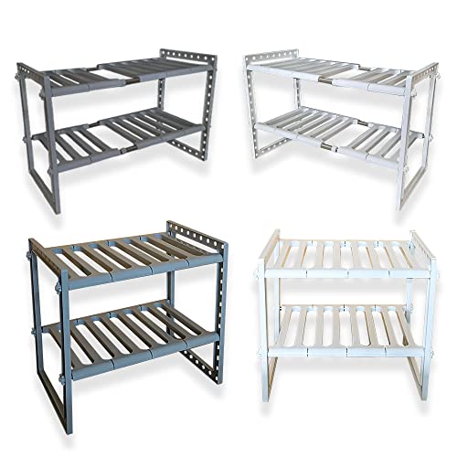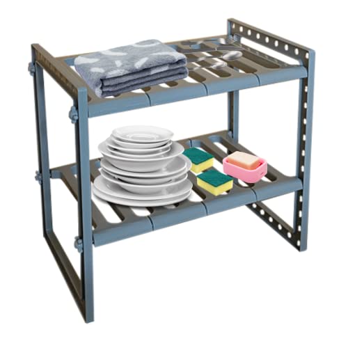 Scaffale Sottolavello per Stoviglie Ripiano Sotto Lavandino Cucina Bagno Mobile Allungabile Modulabile Salvaspazio Porta Spugne Piatti Sapone Asciugamani 2 Ripiani Organizer Lavabo (Grigio)