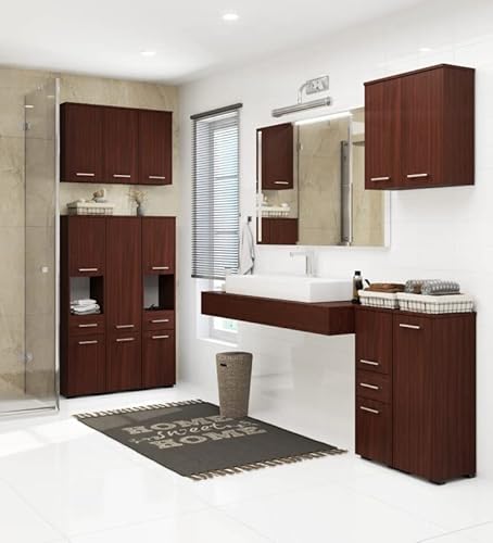 Alcune informazioni tecniche mobile bagno: dimensioni dei mobili: altezza: 85 cm, larghezza: 30 cm, profondità: 30 cm. Materiale: pannello laminato a 16 mm con certificato del pannello: E1. Guide del cassetto: rotola. Le cerniere speciali di questa mensola da parete del bagno si chiuse gradualmente e delicatamente.