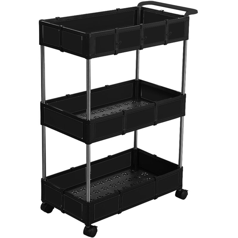 Descrizione: Questo carrello con ruote è perfetto per soggiorno, studio, cucina, bagno e lavanderia. Con dimensioni compatte e grande capacità di archiviazione, fornisce una soluzione di archiviazione flessibile per spazi limitati. Dotato di materiale PE di alta qualità, tubo in acciaio inossidabile per impieghi gravosi e fondo cavo, è impermeabile, antiruggine, robusto e ha una buona circolazione dell'aria. La maniglia ergonomica e le quattro ruote girevoli assicurano un movimento fluido. Caratteristiche: [GRANDE CAPACITÀ DI STOCCAGGIO] Questo carrello a tre strati misura circa 40*22*57 cm/15,75*8,66*22,44 pollici, che vanta dimensioni compatte e una grande capacità per oggetti da cucina, snack, libri, articoli da toeletta e altri articoli per la casa. Inoltre, 4 ganci rimovibili offrono più spazio per gli oggetti che possono essere appesi. [MATERIALE SELEZIONATO] Realizzato in PE premium e resistente acciaio inossidabile tubo per robustezza e facilità di pulizia, il carrello