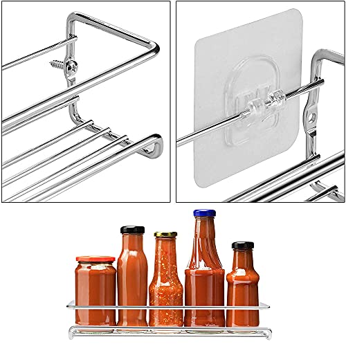 Scaffali a Muro in Metallo per Dispensa, 2 Pezzi Portaspezie da Appendere Set, Ripiani Appesi per Spezie, Organizzatori di Spezie da Parete, con Vite, per Cucina, Bagno, Balcone (Argento)