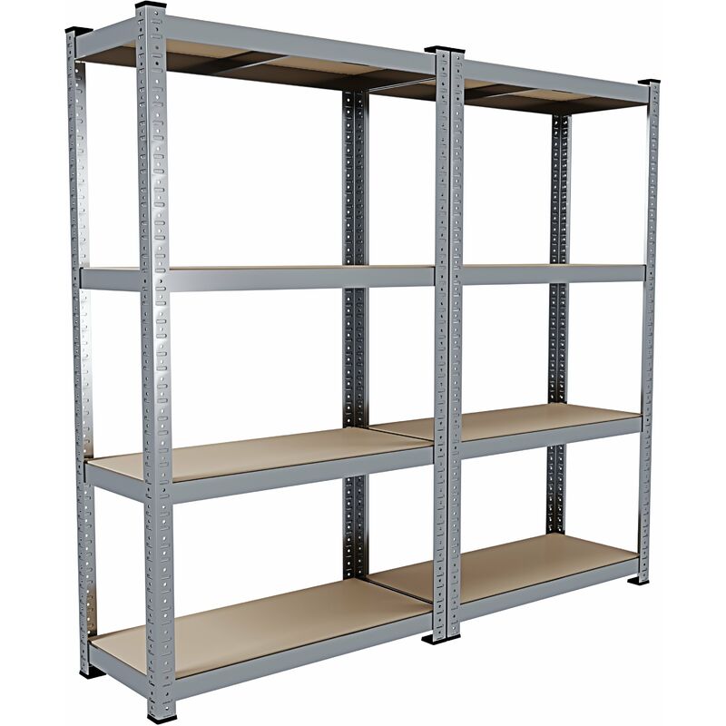 Scaffalatura Raymond con 4 ripiani in metallo e MDF. Ideale per garage, officine, cantine o magazzini. Grazie alla sua alta portata di 700 kg è in grado di immagazzinare qualsiasi tipo di oggetto. Di facile montaggio grazie alla struttura senza bulloni (Push-fit) che può essere montata senza l'utilizzo di attrezzi. Caratteristiche principali: - Dimensioni totali: 160 x 80 x 40 cm (Altezza x larghezza x profondità) - Portata massima: 700 kg - 4 Ripiani realizzati in MDF - Ripiani regolabili in altezza - Antiruggine - Costruzione senza bulloni - Struttura in ferro - Adatto per immagazzinare qualsiasi tipo di oggetto Contenuto della confezione: 2X Scaffalatura con 4 ripiani 1X Manuale di montaggio