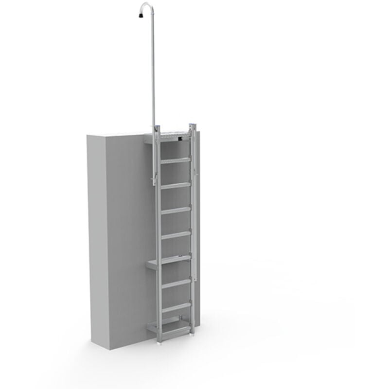 USO - Scendere in un pozzo, in una cisterna o in una fossa. - Accesso a serbatoi, cisterne e silos nei settori petrolchimico, alimentare, energetico, del trattamento delle acque e altri. SCALA STRETTA - Scala con larghezza utile ridotta di 0.43m. - Consente il passaggio attraverso aree confinate: pozzetti, pozzetti o chiusini. SICUREZZA - Scala dotata di 2 impugnature retrattili per un utilizzo sicuro. - Gradino di atterraggio per una salita e una discesa sicure e confortevoli. - Piedini di fissaggio per una maggiore stabilità. SU RICHIESTA - Altre altezze di ingombro disponibili su richiesta per soddisfare le vostre esigenze. - Senza corrimano retrattile e senza gradino di sbarco, disponibili su richiesta (non a norma EN-131).