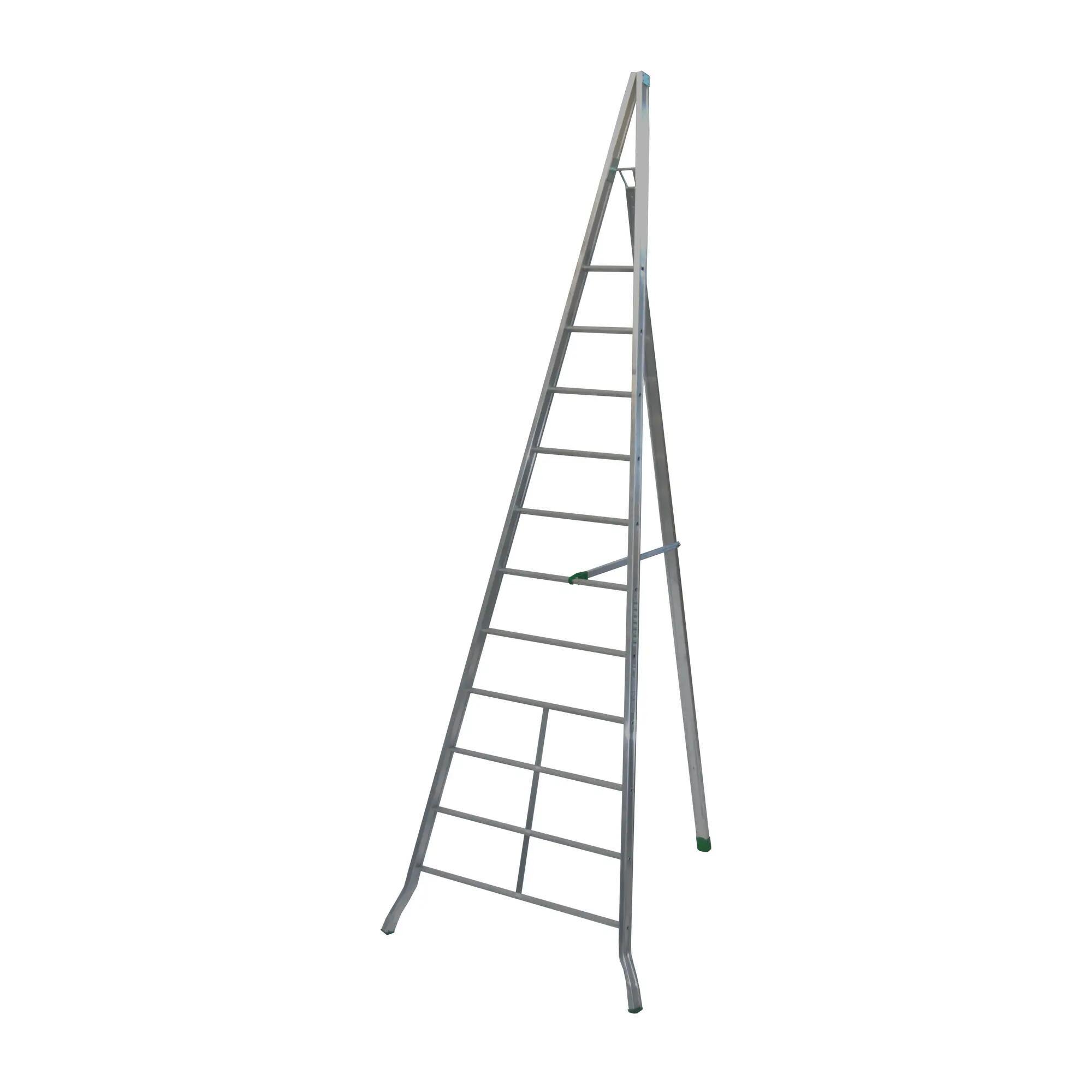 Conforme a UNI EN 131, D.Lgs. 81/08. Ideale per uso agricolo, manutenzione piante e raccolta frutta. La struttura in alluminio rende la scala resistente, leggera e facile da trasportare