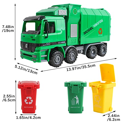 DeAO 1:10 Scala Attrito Alimentato Ingegneria Costruzione Garbage Truck Veicolo con Tre Contenitori e Sensore Inerziale Automatico Incluso - Divertente Regalo Educativo per Bambini
