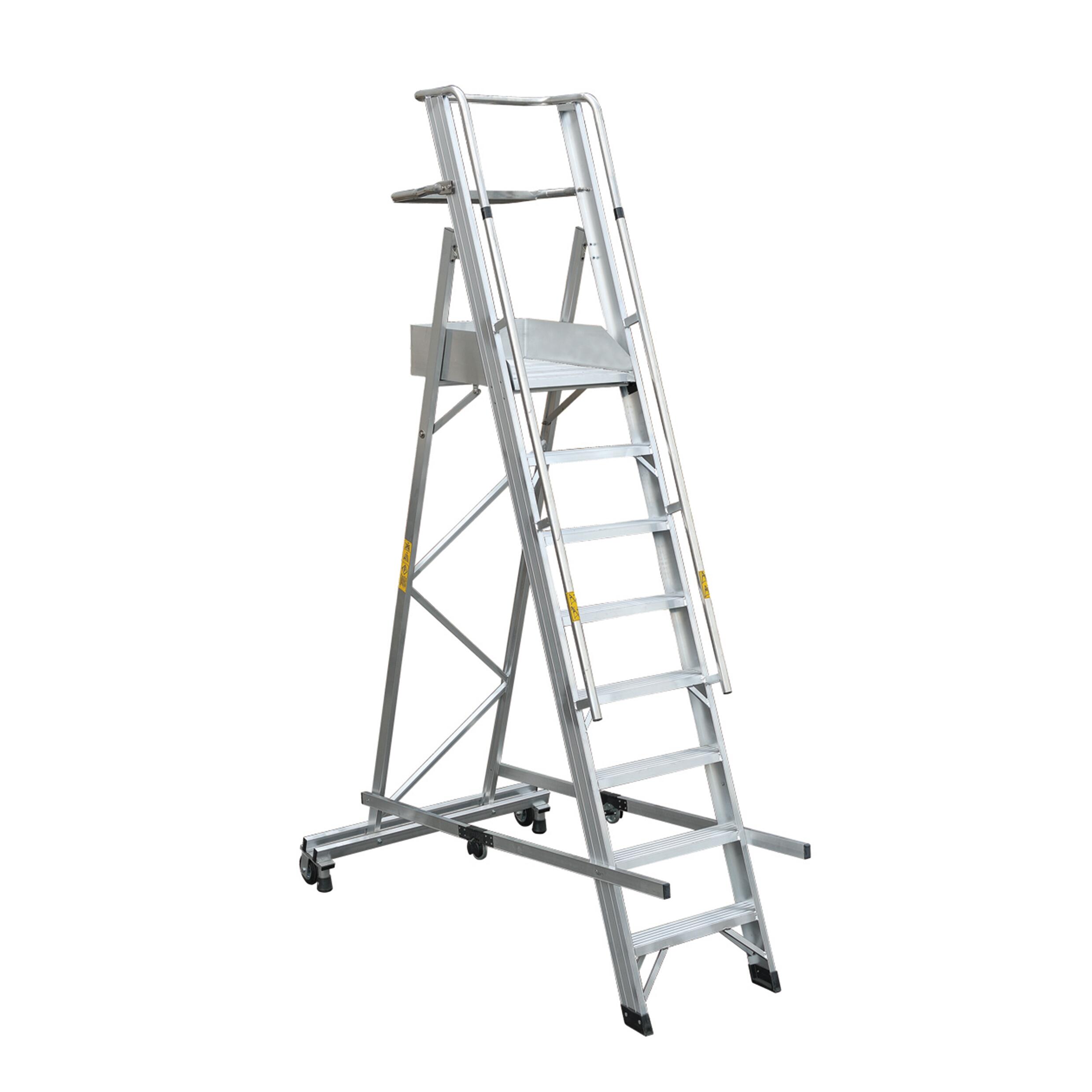 Conforme a UNI EN 131. Ideale per uso professionale. La struttura in alluminio rende la scala resistente, leggera e facile da trasportare. Grazie alla barra stabilizzatrice puoi lavorare con stabilità su superfici differenti