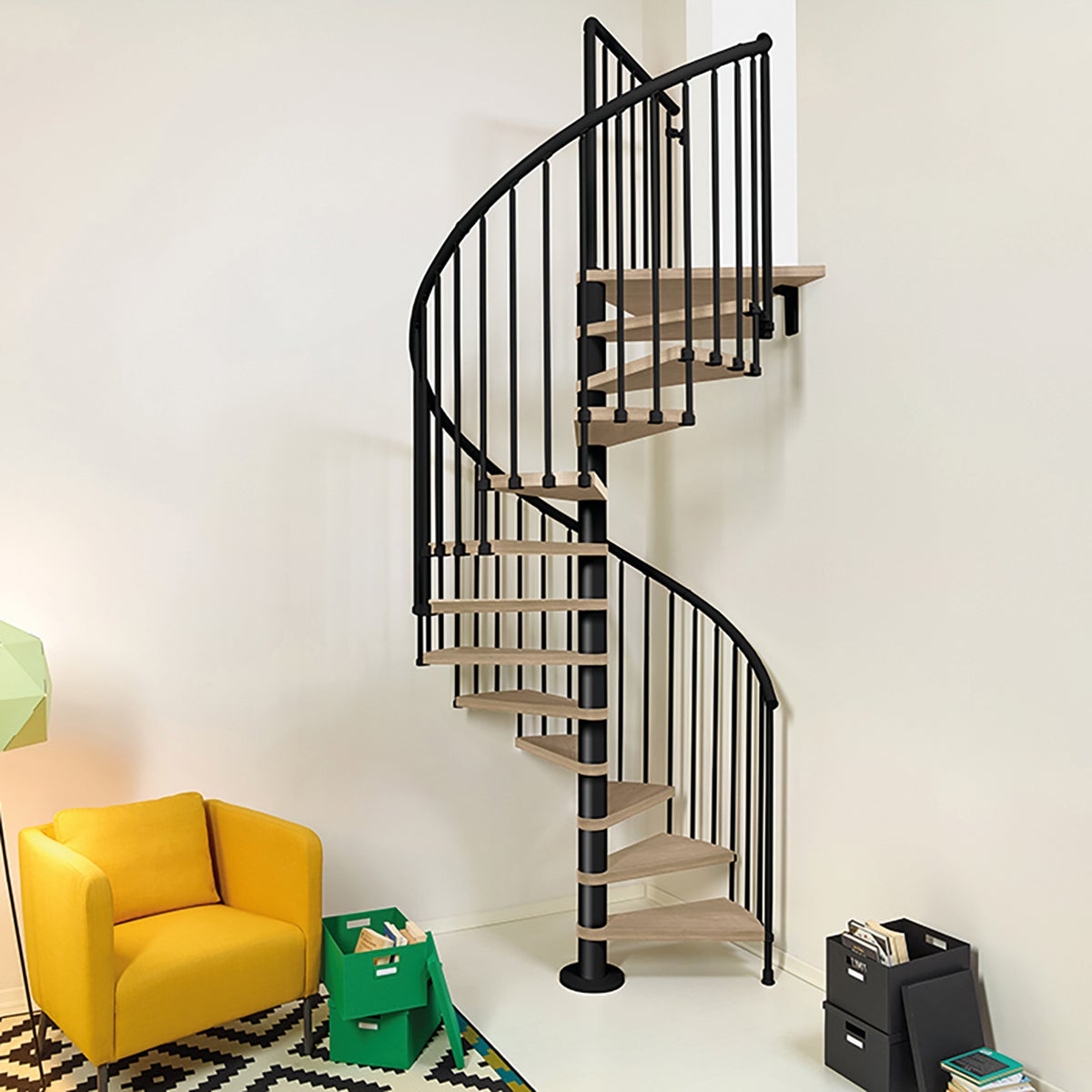 Se sei alla ricerca di un prodotto dall'estetica notevole, senza rinunciare alla praticità e alla durabilità, la scala RING LOUNGE è la scelta migliore. La scala a chiocciola per interno modello RING è realizzata combinando la bellezza del legno con l'acciaio. L'elemento distintivo della scala sono i gradini in multistrato di betulla, rivestiti in laminato HPL olmo (colore chiaro o scuro), materiale innovativo con elevate prestazioni ed altamente resistente. La ringhiera è composta da paletti in acciaio verniciato dello stesso colore della scala. Il corrimano ha un'anima in alluminio, ricoperta da una pellicola in PVC coordinata con i tre colori dei paletti della scala. La scala è caratterizzata da un pianerottolo che, rifilato in loco, può assumere tre diverse configurazioni, trapezoidale, triangolare o circolare, permettendo così l'installazione della scala in fori di forma differente. Il senso di rotazione, orario o antiorario, viene deciso durante l'installazione. I diametri disponibili sono 118, 128, 138, 148 e 158 cm.. Scala prefabbricata, facile da montare per chi ama fai da te.