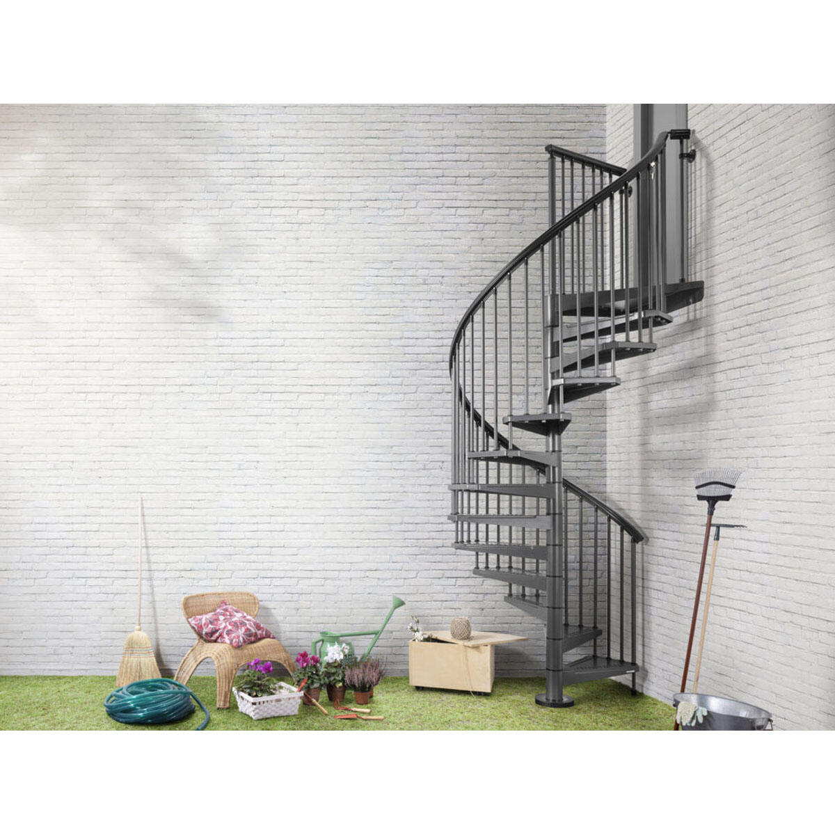 La scala a chiocciola LUCIA è particolarmente indicata per un uso esterno in quanto fortemente resistente alla ossidazione causata dagli agenti atmosferici. La scala LUCIA è realizzata in acciaio verniciato sottoposto ad un particolare trattamento che prevede la zincatura a caldo e la successiva verniciatura a polveri per esterno. I gradini vengono immersi in un bagno di zinco a 400 gradi: il miglior processo industriale di protezione contro la corrosione dell'acciaio. Il risultato finale è una scala che può sopportare temperature che vanno dai -20° ai + 50°. Il pianerottolo di forma triangolare e il corrimano in pvc consentendo l'installazione della scala in fori di tipologia differente. Il senso di rotazione (orario o antiorario) viene deciso al momento della posa in opera. I diametri disponibili sono 120, 140 e 160 cm.. Scala prefabbricata, facile da montare per chi ama fai da te.. La soluzione ideale per sfruttare al meglio gli spaz