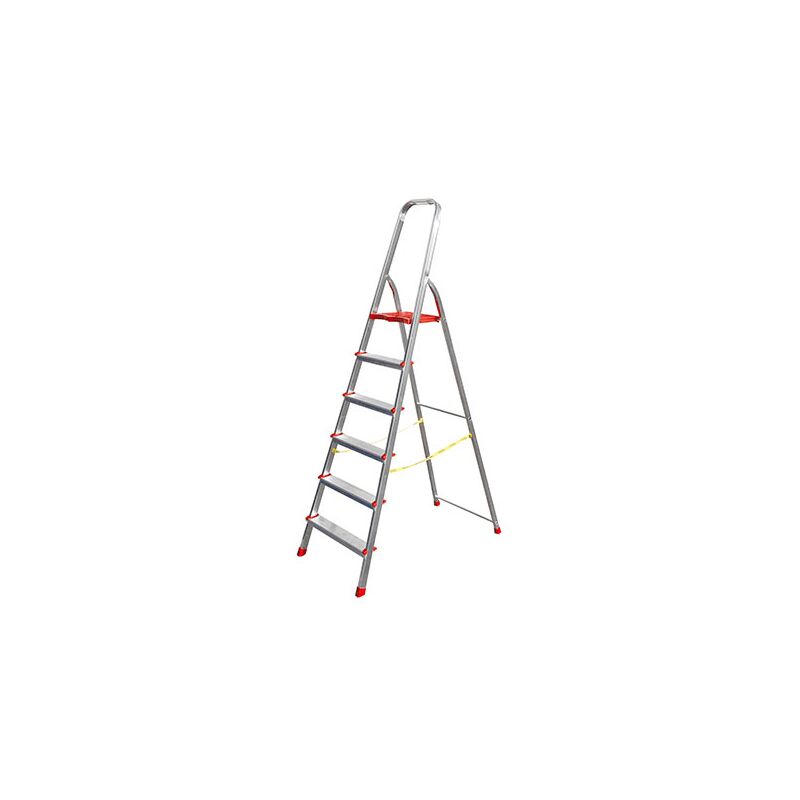 Scala domestica in alluminio a 7 gradini - H. 1,54 m La scala domestica in alluminio è la soluzione ideale per raggiungere altezze elevate in modo sicuro e pratico. Con una sezione montante in alluminio di 40x20 mm e una sezione sostegno in alluminio di 35x20 mm, questa scala offre una robustezza e una stabilità senza pari. Caratteristiche: Gradini in alluminio estruso larghi 80 mm per una presa sicura e confortevole Fascia di sicurezza nelle versioni a partire da 6 gradi per una maggiore stabilità Piedini antiscivolo per una posizione salda e stabile su qualsiasi superficie Portata garantita fino a 150 kg per una sicurezza ottimale Conforme alla normativa europea EN131 per garantire la massima qualità e sicurezza La scala domestica in alluminio a 7 gradini è perfetta per le attività domestiche e professionali. Grazie alla sua altezza di 1,54 m al piano, ti permette di raggiungere facilmente ripiani alti, armadi e scaffali. Scegli la qualità e la sicurezza della scala domestica in