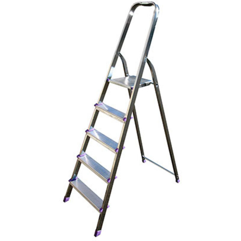 Scala domestica. Montante in alluminio con sezione 40 x 20 mm. Sostegno in alluminio con sezione 30 x 20 mm. Gradini in alluminio con sezione di appoggio 80 mm. Fissaggio gradini con 4 rivetti con portata di 120 kg/cad. Pianetto in lamiera zincata o verniciata silver. Portata garantita 100 kg. Conforme al D.Lgs 81/2008. (DianFlex)Misura: 5 gradini - H. al piano 1,10 m