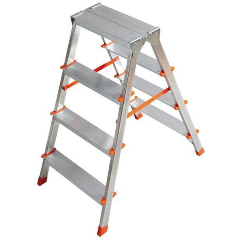 In tubolare di alluminio mm 20x40 Gradini antiscivolo larghezza 80 mm A norme europee EN 131 4 gradini Altezza piattaforma 84 cm Altezza a forbice 84 cm Altezza complessiva 93 cm